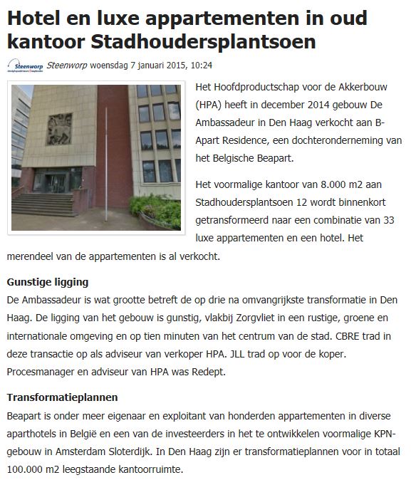 Het kantoor is in 2015/2016 ingrijpend verbouwd van kantoor naar appartementen en een hotelfunctie waarbij aan de achterzijde en de kopgevel balkons zijn toegevoegd.
