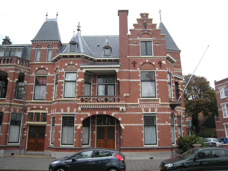 Hoekpand uit ca. 1905 op onregelmatige plattegrond, bestaande uit twee bouwlagen en kapverdieping. In de gevel langs de Van Bleiswijkstraat is een torenvormig bouwdeel gesitueerd, afgesloten door een tendak. Boven de verdiept liggende entree in de voorgevel is een inpandig balkon gesitueerd. Het pand maakt deel uit van de reeks herenhuizen Statenlaan 1 t/m 7 en 11 t/m 33a, ontworpen door N. Molenaar. Trapgevels of kanteelachtige gevelbeëindigingen en wisselende dakvormen verlevendigen de architectuur waarin renaissancistische stijlkenmerken zijn toegepast. Een bindend element in het ensemble vormt de herhaling van gemetselde balustraden, waarvan de horizontale werking versterkt wordt door het gebruik van witte kalksteen in één lijn. Hetzelfde geldt voor het sierfries, dat tussen parterre en verdieping over de gehele gevelwand doorloopt. De gevels, die opgetrokken zijn in rode verblendsteen, worden verder verlevendigd doordat voor de accentuering van neggen, strekken en bogen witte kalksteen is toegepast.