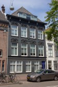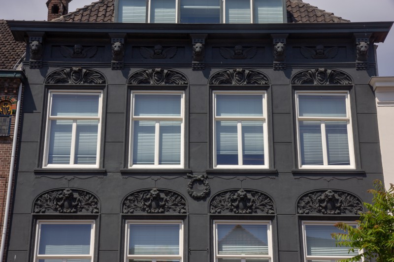 Pand ter breedte van vier vensterassen en bestaande uit parterre met twee verdiepingen. Lijstgevel uit het derde kwart 19de eeuw in eclectische trant. Ontlastingsbogen met stucwerkversiering in de boogtrommels. Hoofdgestel met kroonlijst op consoles met leeuwenmaskers en fries met puttokopjes.