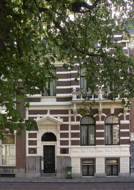 Pand met gevel in neorenaissancestijl, 1886, architect C.J. van Roode Jr. Het huis bestaat uit een souterrain, parterre en verdieping en telt drie vensterassen, waarvan twee als risaliet zijn opgevat en door een trapgevel bekroond worden. Het souterrain heeft een gebosseerde bepleistering. De gevel vertoont verder gepleisterde banden, negblokken, sierankers en een cartouche. Het rechte deel van de gevel draagt een houten kroonlijst met consoles. Deur met bovenlicht en omlijsting, bekroond door een fronten. Balkon op drie consoles. De vensters van het souterrain hebben gietijzeren raamhekken.