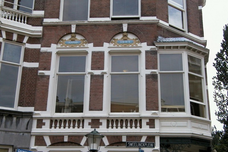Onderdeel van de bebouwing langs het ovale Sweelinckplein, het stedebouwkundig hoofdmoment van de wijk Duinoord.