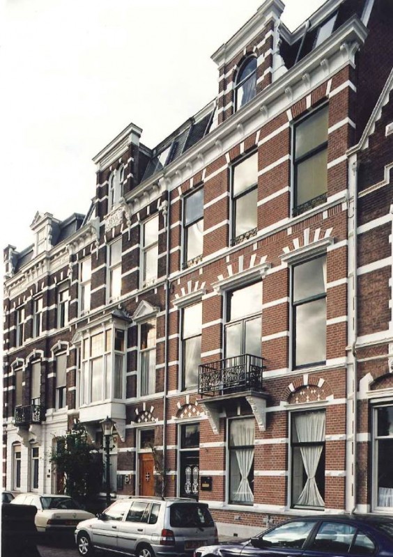 Onderdeel van de bebouwing rond het ovale Sweelinckplein, het stedebouwkundige hoofdmoment van de wijk Duinoord. Bouwplan uit 1894 voor twee herenhuizen, gesigneerd H. van Wort te Scheveningen.