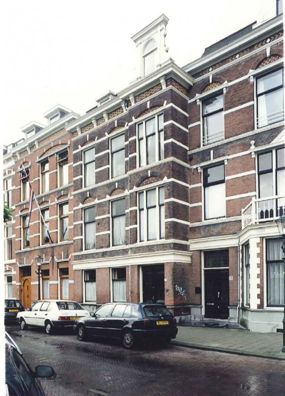 Neo-renaissance pand, eind 19e eeuw. Gevelversiering met banden, geblokte ontlastingsbogen en frontons. Kroonlijst met consoles.
