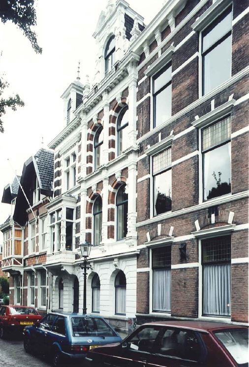 Woonhuis in op de Vlaamse renaissance geinspireerde stijl van drie bouwlagen met kapverdieping, drie vensterassen breed. Rijk geornamenteerde gevel van baksteen met gepleisterde parterre. De gevel is voorzien van banden, halve zuilen en pilasters met bewerkte schachten, sluitstenen, lijsten en consoles. De topgevel van de risalerende twee rechter vensterassen bezit voluten en wordt bekroond door een gebroken fronton.