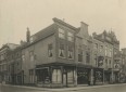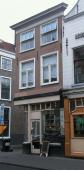 Van oorsprong 17e eeuws hoekpand bestaande uit twee bouwlagen onder een met pannen gedekte kap met de nok loodrecht op de Wagenstraat, twee vensterassen breed en vier assen diep. De rood gesausde voorgevel is een hoger opgetrokken lijstgevel, waarachter de kap schuilgaat. De zoldervensters zijn 6-ruits schuifvensters. Winkelpui in overgangsarchitectuur uit 1913 met afgeronde glazen hoek en in het zicht gelaten, geklinknagelde ijzeren constructie.