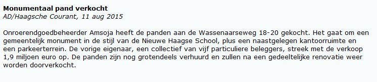 Kantoorgebouw van algemeen belang voor de gemeente Den Haag wegens zijn schoonheid en architectuur-historische waarde als voorbeeld van expressionistische baksteenarchitectuur uit omstreeks 1920. Typologisch van belang als specimen van functionele kantoorarchitectuur uit de genoemde periode.