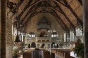 De sacristie bezit aan de kerkzijde een gekoppelde boogstelling op een natuurstenen pijlers en zij wordt overdekt door een balkenzoldering. Tot de, grotendeels uit de bouwtijd of kort daarna daterende, inventaris van de kerk behoren onder meer de volgende onderdelen: boven de pijlers van het schip een reeks van zes in Franse kalksteen gehouwen heiligenbeelden van de beeldhouwers Jac. en Johanna Sprenkels; in de zijkapellen van de zijbeuken beelden van het H. Hart en Antonius van Padua, vervaardigd door Jac. Sprenkels; in de noordelijke zijbeuk, een in onyx gehouwen beeld van Theresia van Lisieux, door Jac. en Johanna Sprenkels; marmeren hoogaltaar onder een bronzen ciborium dat rust op marmeren zuilen; tabernakel op het hoogaltaar met in koper gedreven deurbekleding en kroon, vervaardigd door Jan Eloy en Leo Brom; het linker zijaltaar, gewijd aan Maria, en het rechter zijaltaar, gewijd aan St. Jozef, beide met marmeren mensae en retabels en reliëfvoorstellingen in koper en brons van J.E. en L. Brom; marmeren communiebank met in koper gedreven reliëfs en hekken van J.E. en L. Brom; marmeren preekstoel, gedragen door gestileerde leeuwefiguren, met overhuiving en bronzen arendlezenaar van J.E. en L. Brom; marmeren doopvont met bronzen deksel en kraan, door J.E. en L. Brom; in bronsreliëf uitgevoerde kruiswegstaties door Leo Brom; wandarmen, waaraan godslamp en consecratiebel hangen, op het priesterkoor, uitgevoerd in brons door J.E. en L. Brom; smeedijzeren hekwerken voor de zijkapellen en de nevenruimten van het priesterkoor, alsmede de verguld bronzen kandelabers en kandelaars op priesterkoor en hoogaltaar, alles door J.E. en L. Brom; de hardstenen altaren in de kapellen van het H. Hart en Antonius, ontworpen door Dom Paul Bellot; het natuurstenen Paschalisaltaar met bronzen retabel aan het eind van de zuidelijke zijbeuk. De bouwmeester van de kerk, A.J. Kropholler, ontwierp de houten banken en stoelen, de smeedijzeren lichtkronen, de hekken voor de Doopkapel en de kapel van O.L. Vrouw van de Vesting, alsmede de inventaris van de sacristie, o.a. de credenstafel en de paramentenkast. Het orgel, aangebracht tegen de torenwand boven de middelste spitsboog en rustend op houten korbelen met kraagstenen, dateert van kort na de bouw van de kerk. Orgel en orgelkas zijn niet van waarde uit het oogpunt van monumentenzorg.
