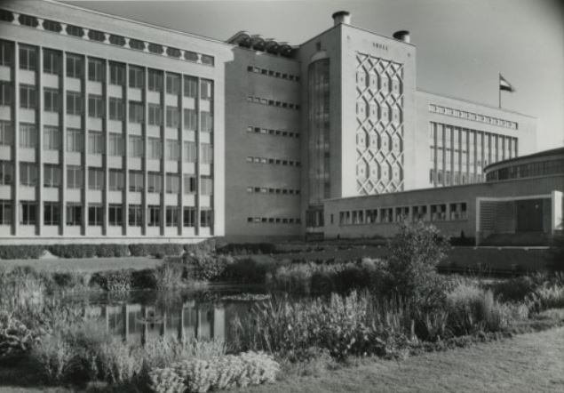 Het kantoorgebouw heeft een rechthoekige plattegrond en telt boven het souterrain zes bouwlagen. De constructie van het gebouw is van gewapend beton. In mei 1940 was het betonskelet slechts voor een klein deel gereed en het duurde tot 1942 voordat het gebouw in gebruik genomen kon worden. Pas in 1946 was de definitieve voltooiing.