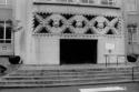 De gevel is uit lichtkleurige baksteen opgetrokken. Het basement van de gevel en de middenrisaliet zijn van natuursteen. De ornamentiek uitgevoerd in natuursteen, kunst-beton en majolica is ondermeer aangebracht boven de hoofdingang in de vorm van in beton uitgevoerde, achthoekige ornamenten met medaillons en schelpmotieven, tegen een achtergrond van gekleurd majolica. De twee dragers van de luifel hebben de vorm van gestyleerde schelpen. De lage zeshoekige vensters van de bovenverdieping worden gescheiden door geornamenteerde zandloper-achtige penanten.