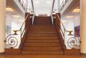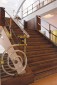 Aan de korte zijde van het gebouw zijn twee trappehuizen. Deze zijn als glazen uitbouwen in het midden van de zijgevels geplaatst en zijn ovaalvormig. De trappehuizen eindigen boven de zesde bouwlaag en worden onderling met een rechthoekige gang die precies in het midden van het dak en parallel aan de voorgevel loopt, verbonden. Halverwege de gang kan men voornoemde luifel achter de middenrisaliet bereiken.