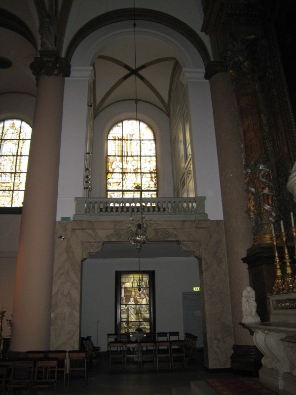 statie verheven kapel van de Spaanse legatie. De huidige polychromie van het kerkinterieur dateert van de restauratie welke in 1992 gereed kwam en is min of meer een reconstructie van de oorspronkelijke beschildering.