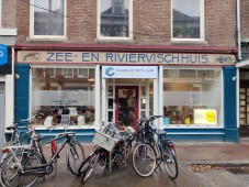 De winkelpui bestaat uit een breed middenportiek met ter weerszijde etalages. De pui heeft een in hardsteen uitgevoerde borstwering en eveneens hardstenen hoekpenanten. Op de hoeken met het portiek zijn ijzeren zuiltjes toegepast. Bijzonder is het tegeltableau dat de pui beëindigt. Hierin is de naam Zee- en Riviervischhuis opgenomen. Links van de naamaanduiding is een afbeelding van een kreeft en rechts van een karper. Rechtsonder is ook de naam Rozenburg te lezen. Het tegeltableau is dan ook afkomstig van de  N.V. Haagsche Plateelbakkerij Rozenburg die van 1883 tot 1916 in bedrijf was. De winkelpui is gemaakt in opdracht van J.J. Hoek die met zijn handel in vis in 1912 verhuisde van de Prins Hendrikstraat naar de Zoutmanstraat.