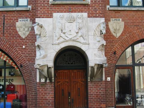 Het ontwerp voor het hoofdkantoor van de Assurantiemaatschappij Tegen Brandschade De Nederlanden van 1845 was het eerste van architect H.P. Berlage (1856-1934) dat in Den Haag werd uitgevoerd. Het monumentale pand uit 1895, gelegen tegenover de Grote Kerk, werd gebouwd in opdracht van C.M. Henny (1817-1906). Net als veel andere bedrijven liet ook De Nederlanden van 1845 door middel van haar geveldecoratie zien, dat zij zowel in Nederland als overzee voor de consument een betrouwbare partner was. De gevelornamenten tonen zestien schilden met de namen en wapens van de landen en plaatsen waarmee zaken werden gedaan. Rechts naast de hoofdingang is het wapen van Batavia met daarboven ‘O. Indië’. De glas-in-loodramen van de vergaderzaal, vervaardigd door glasatelier ’t Prinsenhof uit Delft, verbeelden de wapens van de Nederlandse provinciën en dat van Batavia.