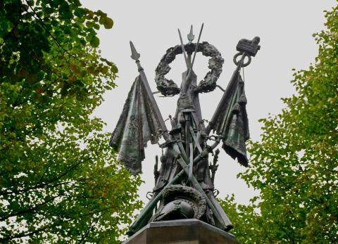 Verderop op het Lange Voorhout staat (ter hoogte van huisnummer 102) een gedenkteken voor Karel Bernhard hertog van Saksen Weimar Eisenach (1792-1862). Hij werd in 1848 benoemd tot commandant van het Nederlands-Indische leger en was onder meer betrokken bij de derde Bali-expeditie. Omdat zulke betrokkenheid bij oorlogshandelingen in Indië in de negentiende eeuw als heldhaftig werd beschouwd, werd na zijn overlijden in 1866 het monument opgericht. Het werd vervaardigd door architect Hugo Pieter Vogel (1833-1886) en beeldhouwer Johan Philip Koelman (1818-1893), en bevat een wapentrofee waarin Javaanse klewangs (traditionele zwaarden) en krissen zijn verwerkt.