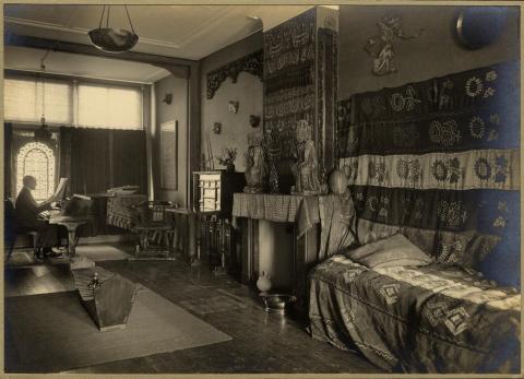 Artistieke uitwisseling tussen Oost en West vond vaak plaats in kunstenaarswoningen. Zo richtte musicus Bernhard van den Sigtenhorst Meyer (1888-1953) in 1919 met zijn vriend, zanger en kunstenaar-dichter Marinus (Rient) van Santen (1882-1943), een huis in Oosterse stijl in. Van Santen had in Azië gereisd, had interesse in het boeddhisme en verzamelde oosterse kunst. Geïnspireerd door de reisverhalen van zijn vriend, maakte Meyer composities in Indische stijl en verwerkte hij gedichten van Noto Soeroto (1888-1951, zie X) tot liederen. De kleine concertzaal in het huis werd een belangrijke cultureel trefpunt in de stad. In 1923 maakten ze een tournee door Nederlands-Indië en bezochten de Boroboedoer, wat voor Meyer een nieuwe inspiratie vormde.