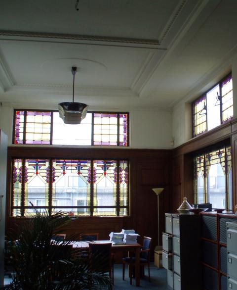 In het trappenhuis van het gebouw zijn symbolen van scheepvaart en handel, zoals de staf en hoed van de handelsgod Hermes, verwerkt in een groot glas-in-loodraam door glazenier Eduard Willem Frederik Kerling (1860-1923). De voormalige bestuurskamer met een prachtig interieur in Art Deco stijl is eveneens intact gebleven.